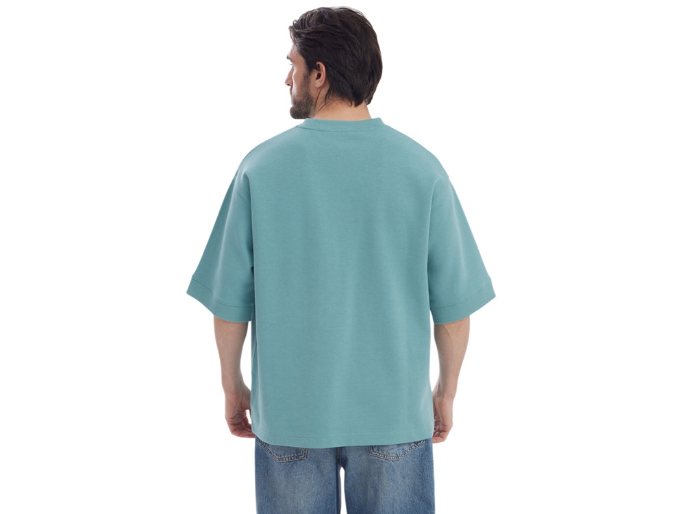 Плотный смесовый интерлок из 75% хлопка и 25% полиэстера 295 г/м² обеспечивает идеальный баланс между износостойкостью, мягкостью и формоустойчивостью — футболка долго сохраняет внешний вид даже при активной носке.