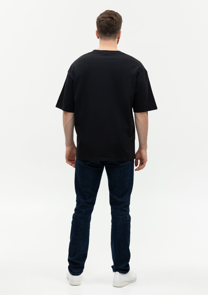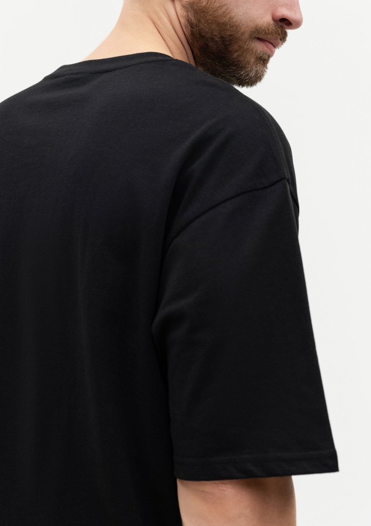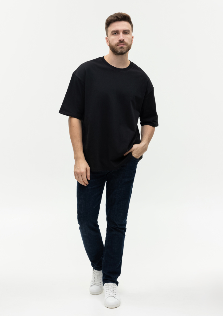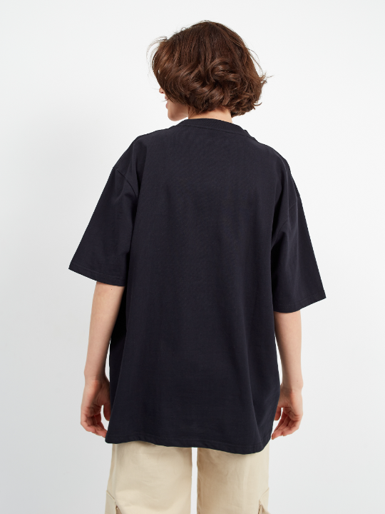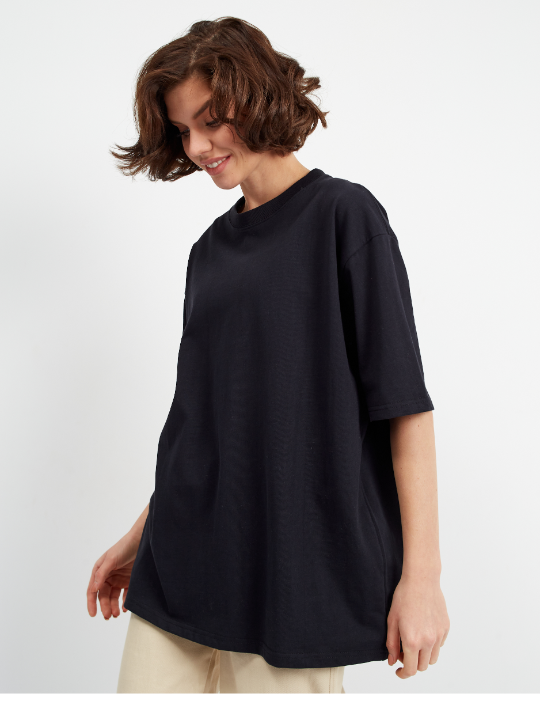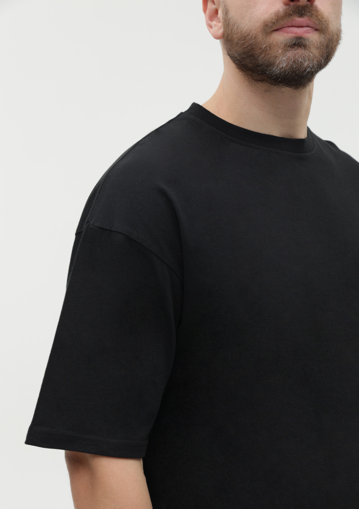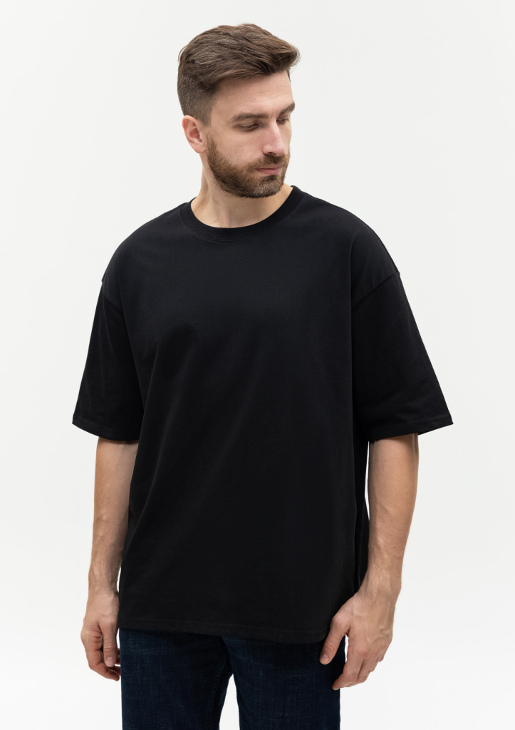 Универсальная футболка силуэта-оверсайз с округлым воротом и спущенной линией плеча.