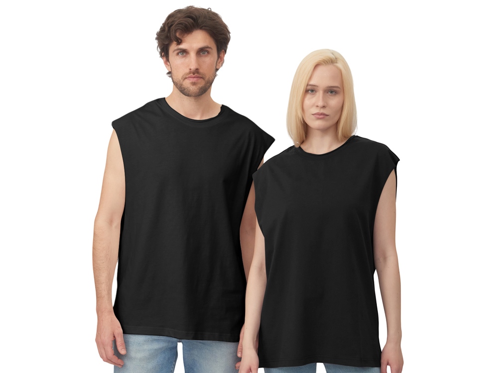 Майка унисекс расширенного силуэта со спущенным плечом, выполнена из плотного джерси 180гр.