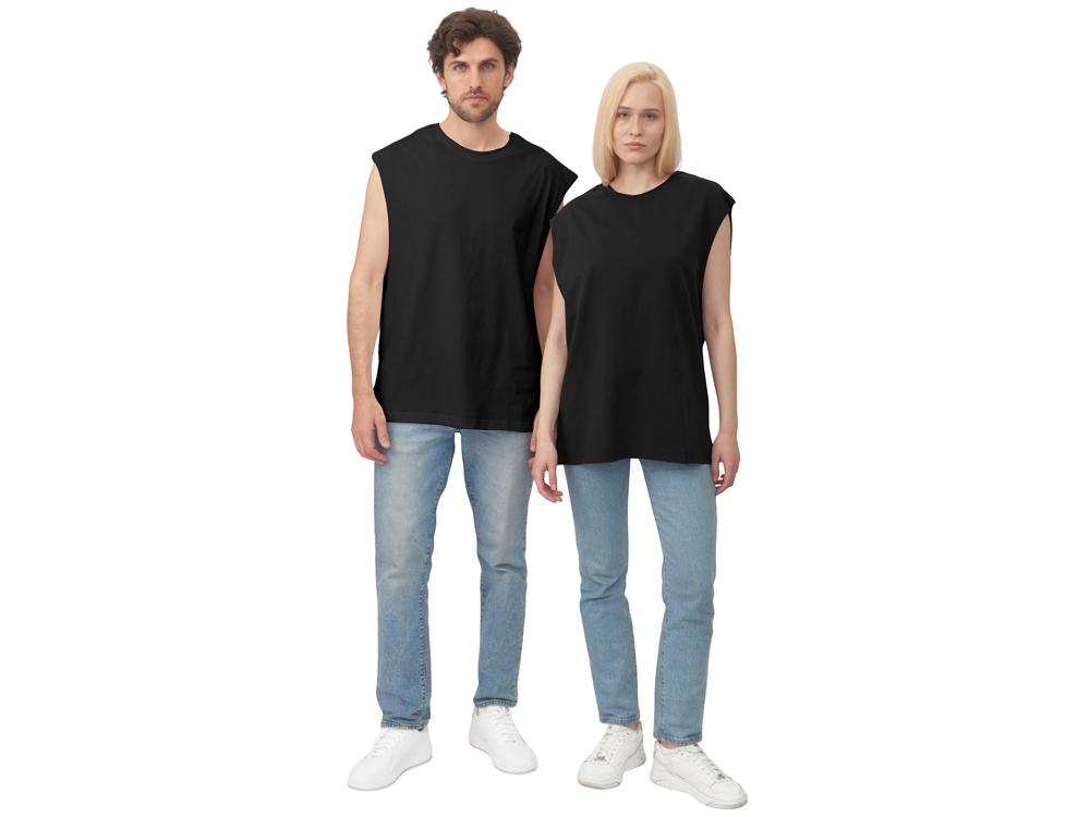 Майка унисекс расширенного силуэта со спущенным плечом, выполнена из плотного джерси 180гр.
