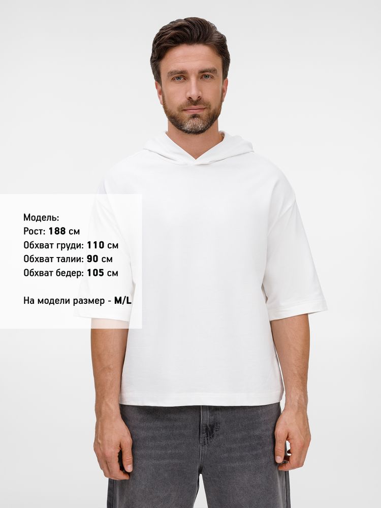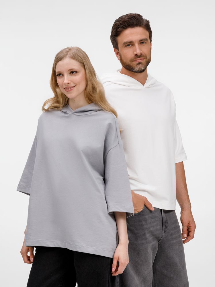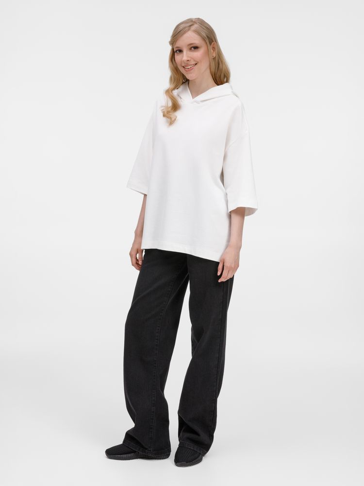 Футболка оверсайз унисекс с капюшоном Neofit, молочно-белая