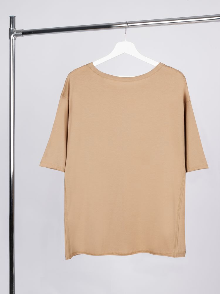 Футболка унисекс свободной посадки Vozduh создана для тех, кто следит за трендами и ценит комфорт. Необработанные края рукавов и низа изделия добавляют ему оригинальности и легкой небрежности, а боковые вставки создают притягательный летящий силуэт.