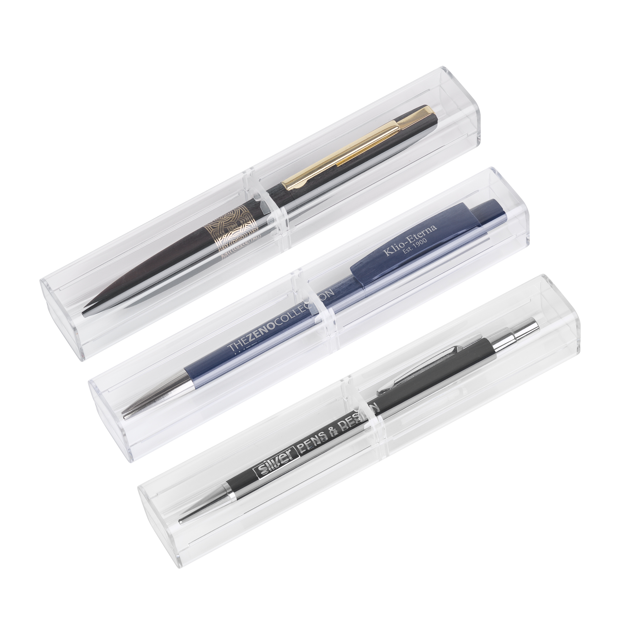 Особая конструкция держателя (внутри футляра) позволяет использовать его для ручек любой толщины.
