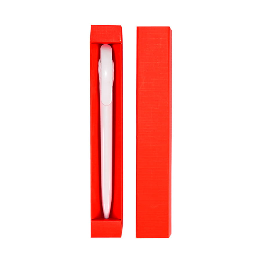 Футляр из дизайнерского картона с тиснением и ламинацией. Подходит для ручек и карандашей длиной до 145 мм и диаметром до 12 мм. Цвет, близкий к Pantone 1797C.