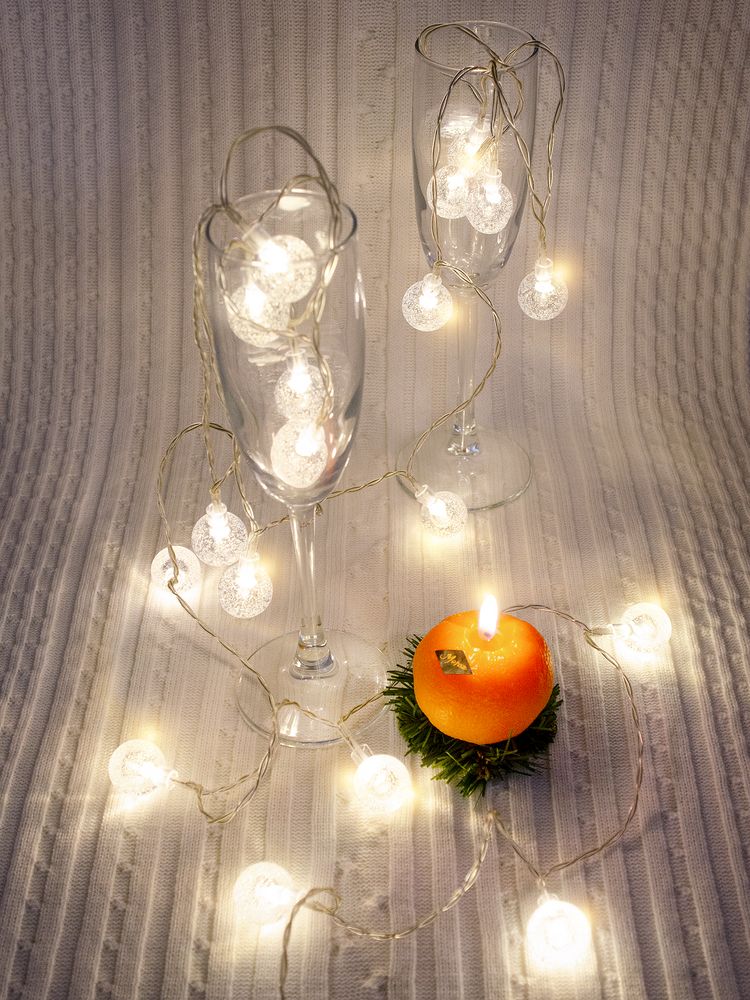 Гирлянда состоит из 20 светодиодов с теплым светом.