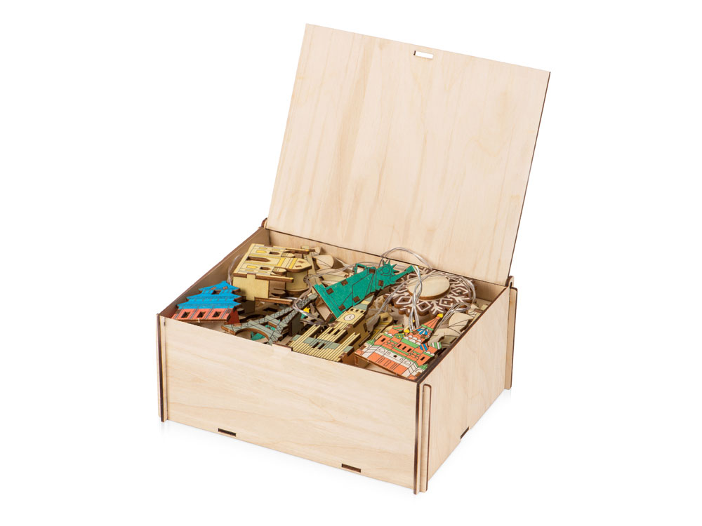 Снежинка и корпус батарейного блока имеют дополнительные съемные панели, которые поставляются в наборе в виде отдельных деталей и крепятся на изделие на двусторонний скотч. Эти элементы специально предназначены для нанесения и придания презенту уникальности.