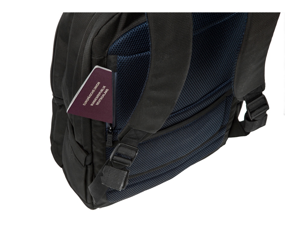• На задней стенке имеется ремень крепления к багажной сумке и скрытый карман на молнии для паспорта, бумажника.