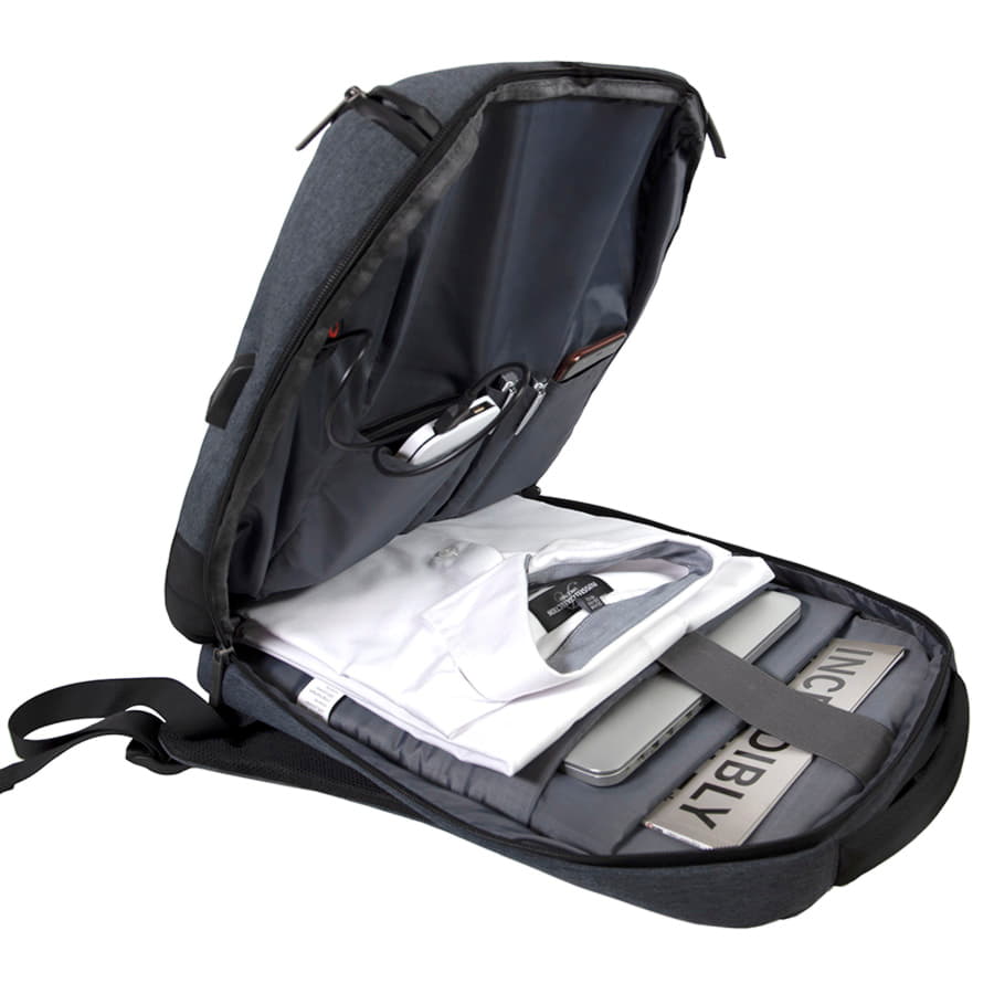 · Основная ткань: 100% полиэстер, подкладка: 100% полиэстер · Объём: 22 литра · Вмещает ноутбук 15" Описание: · Сочетание прочных и водоотталкивающих материалов 2х фактур: меланж и 3D жаккард · Водонепроницаемые молнии с лазерным кроем · Специальный RFID карман с системой защиты от несанкционированного считывания персональных данных · Внутри укрепленный отдел для ноутбука с защитной тесьмой на липучке · USB порт для подзарядки вашего устройства (внутри рюкзака расположен кабель для соединения с power bank) · Удобный карман - органайзер внутри · Умный карман «Анти-вор» для крепления на выдвижной ручке чемодана · Эргономичная спинка и лямки рюкзака из вентилируемого материала · Карман на молнии для проездных карт на лямке рюкзака · Лямки прошиты дополнительными стропами в быстро изнашиваемых местах, которые можно отрегулировать по длине и зафиксировать пластиковыми крепежами · Брендированные металлические пуллеры Bag Fly · Жаккардовый логотип Bag Fly внутри · Картонный ярлык Bag Fly · Внутрь рюкзака вложена сумка из нетканого материала для хранения · Упаковка: прозрачный пакет -