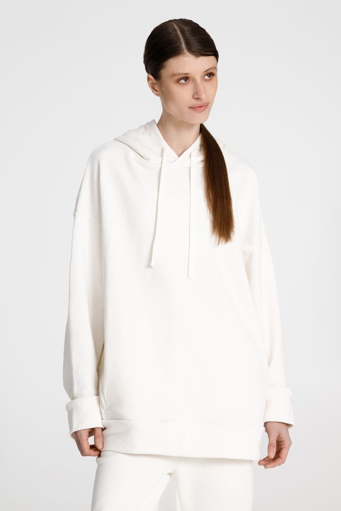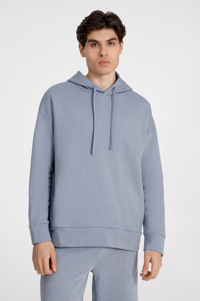 Худи унисекс свободной посадки со спущенным плечом.- Манжеты и низ изделия из основного полотна