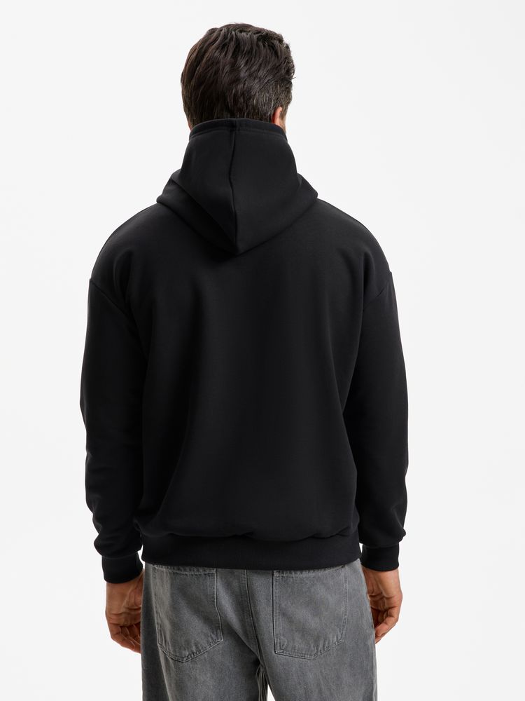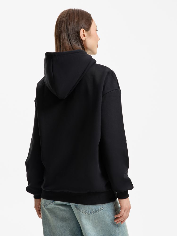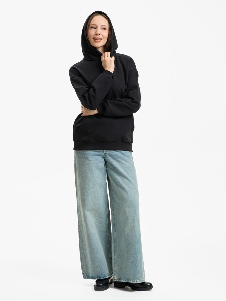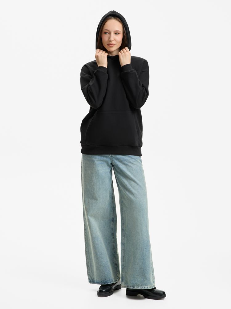 Худи оверсайз Daylero с карманом-кенгуру и уютным капюшоном. Оно великолепно держит форму, так как изготовлено из плотного хлопка.