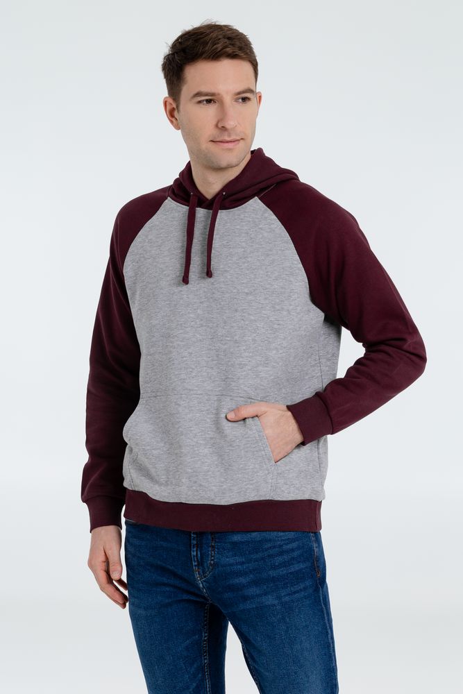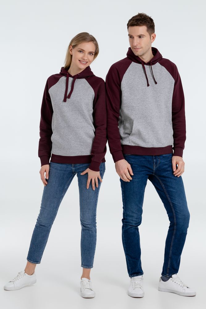 Толстовка унисекс Seattle, серый меланж с бордовым