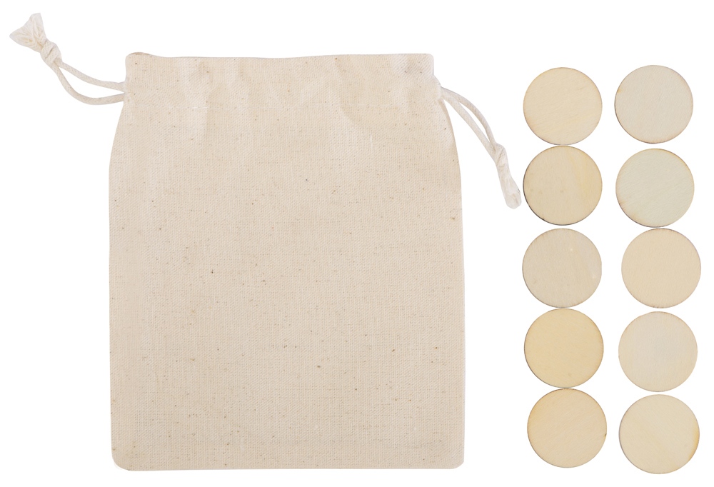 Символы крестиков и ноликов нанесены на небольшие круглые деревянные фишки, а игровым полем служит мешочек, в котором эти фишки хранятся. Благодаря этому игру очень удобно взять с собой, она почти не занимает места и позволит нескучно и с пользой провести время, например, в дороге или на пикнике.