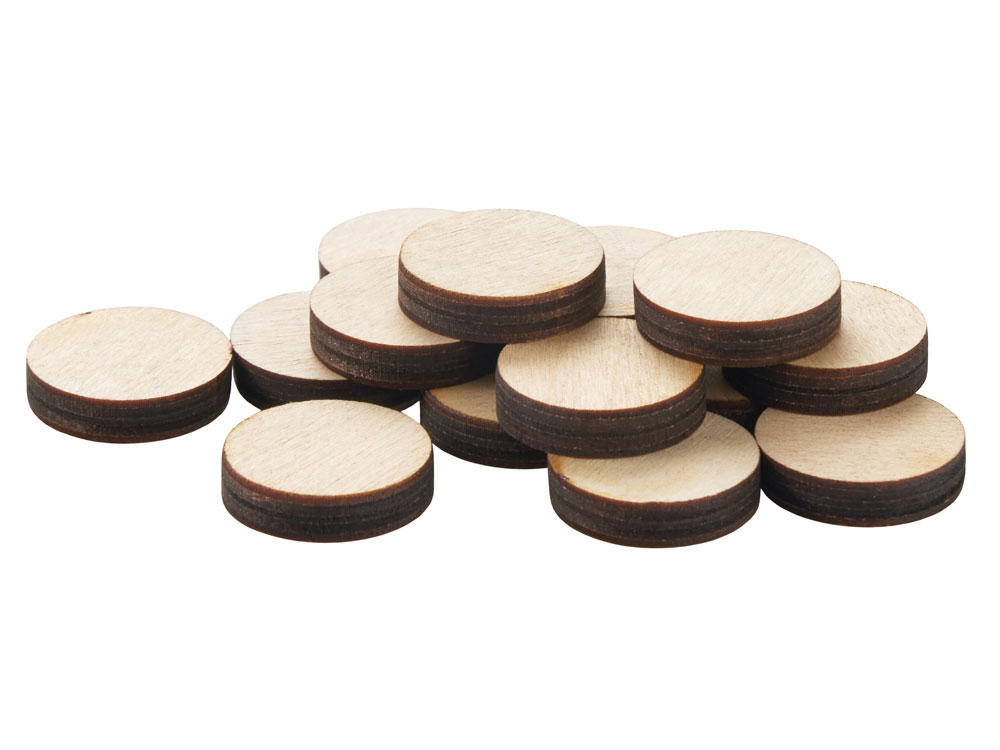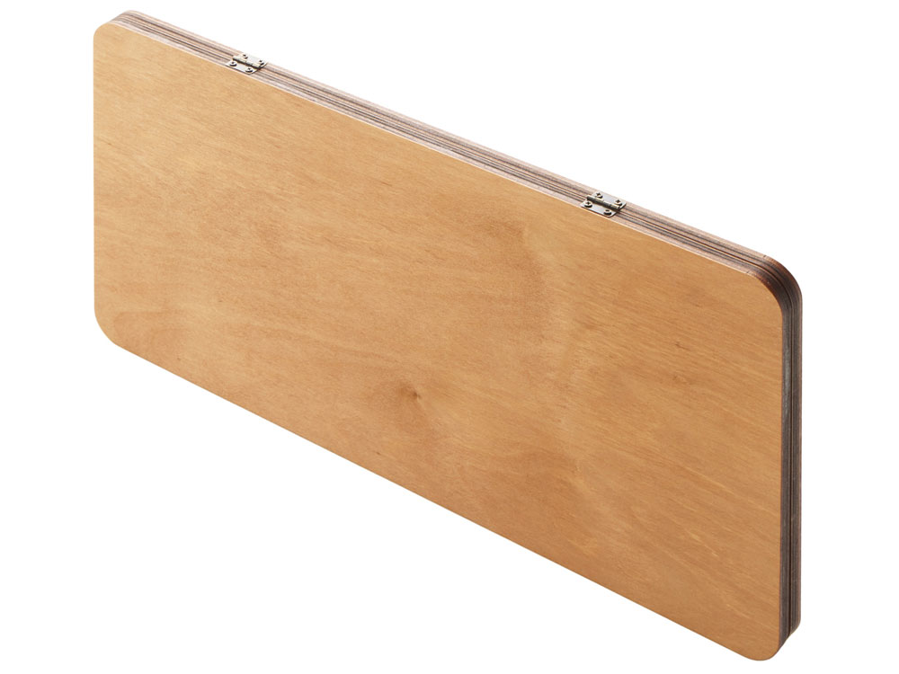 В комплект входят фишки из фанеры двух оттенков, гармонирующих с базовым цветом доски.
