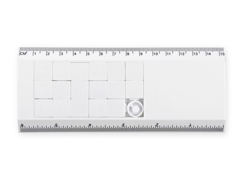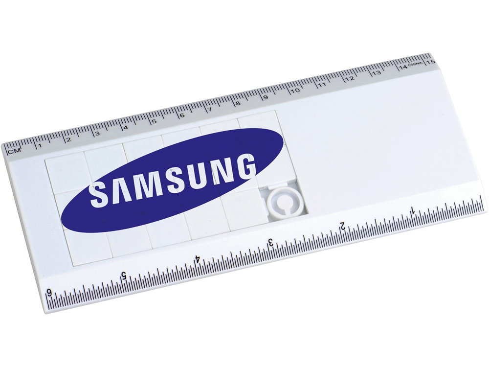 Кто сказал, что логику и мелкую моторику можно развивать только детям? Пару-тройку минут свободного времени в офисе можно посвятить знакомой всем с детства забаве – игре в пятнашки. Игра расположена на линейке, так что это еще и нужная канцелярская принадлежность. Цвета в ассортименте. -
