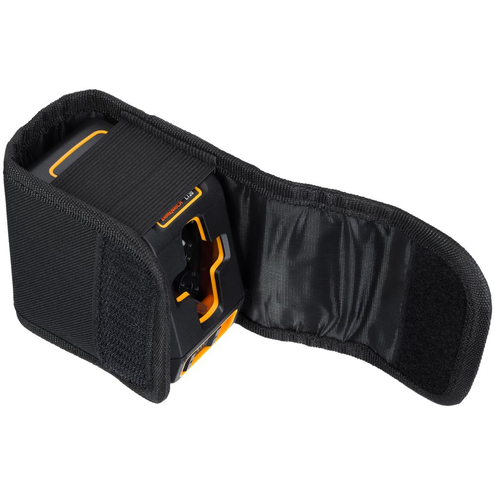 Уровень можно размещать на расстоянии до 15 метров от поверхностей, на которые направлены лучи. Встроенная система компенсации обеспечивает автоматическое выравнивание лазерных линий, благодаря чему разметка выполняется быстро и точно.