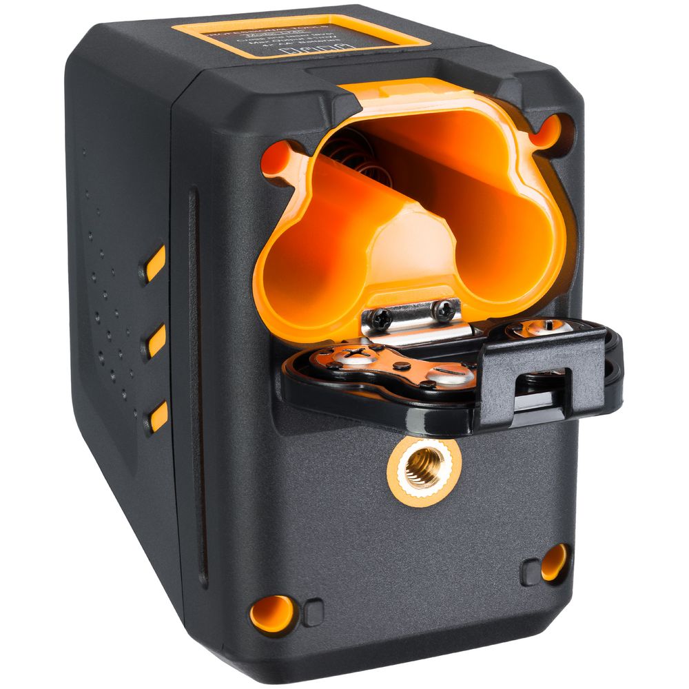 Прибор защищен от пыли и распыления воды, что позволяет не бояться сложных условий ремонта. Питание осуществляется от обычных батареек, яркость можно регулировать. Даже при выборе максимальной интенсивности лазера срок работы на одной паре батареек достигает 40 часов.