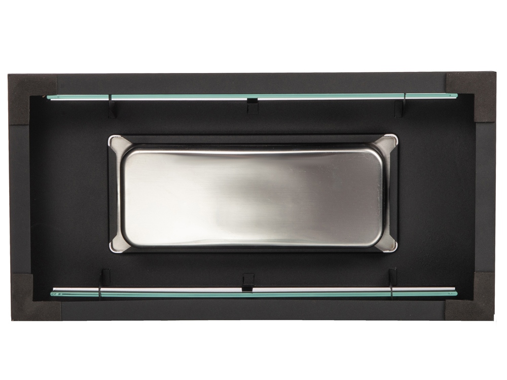 Стильный, минималистичный, он идеально впишется в облик любого пространства, а нанесение тампопечатью, деколью или трафаретной печатью превратит стеклянные стенки в идеальный пылающий фон для лого — кстати, можно обыграть прямоугольную форму биокамина, создавая дизайн в виде интересной рамки. Кроме того, логотипом можно украсить и металлическое основание, добавив гравировку.