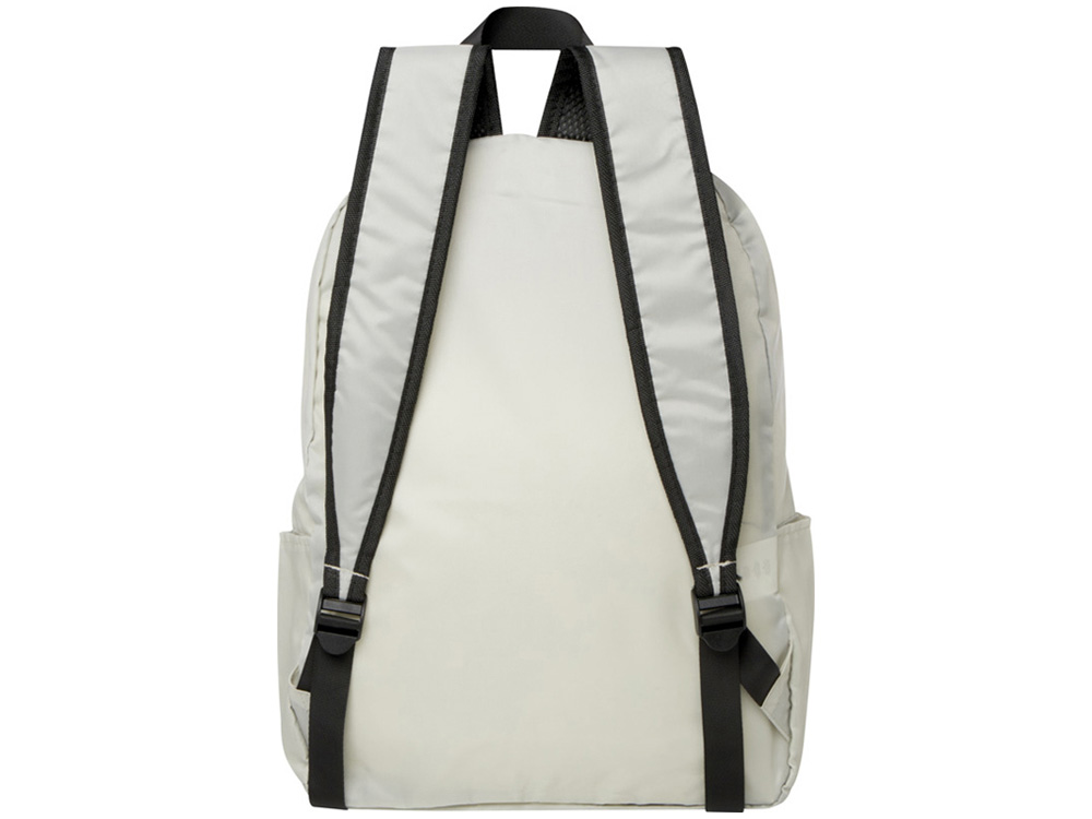 Этот легкий, но прочный рюкзак, созданный для удобства и практичности, легко складывается в компактную сумку с плетенной петлей для подвешивания или переноски, что делает его идеальным для путешественников, туристов и повседневного использования. Основное отделение на молнии, передний карман на молнии, два боковых кармана и регулируемые плечевые ремни. Изготовлен из переработанного полиэстера без содержания ПВХ. Объем: 15 л. GRS certified recycled polyester.