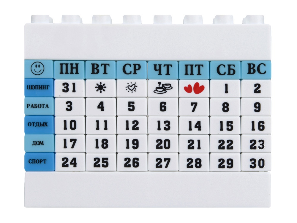 Замечательная и креативная идея для активных и целеустремленных людей. Вечный календарь в виде конструктора подчеркнет индивидуальность обладателя и поможет держать ритм жизни под контролем. Календарь поможет в планировании рабочего и свободного времени, ведь кубики можно собирать так, как вы того хотите, учитывая ваши планы и приоритеты. -