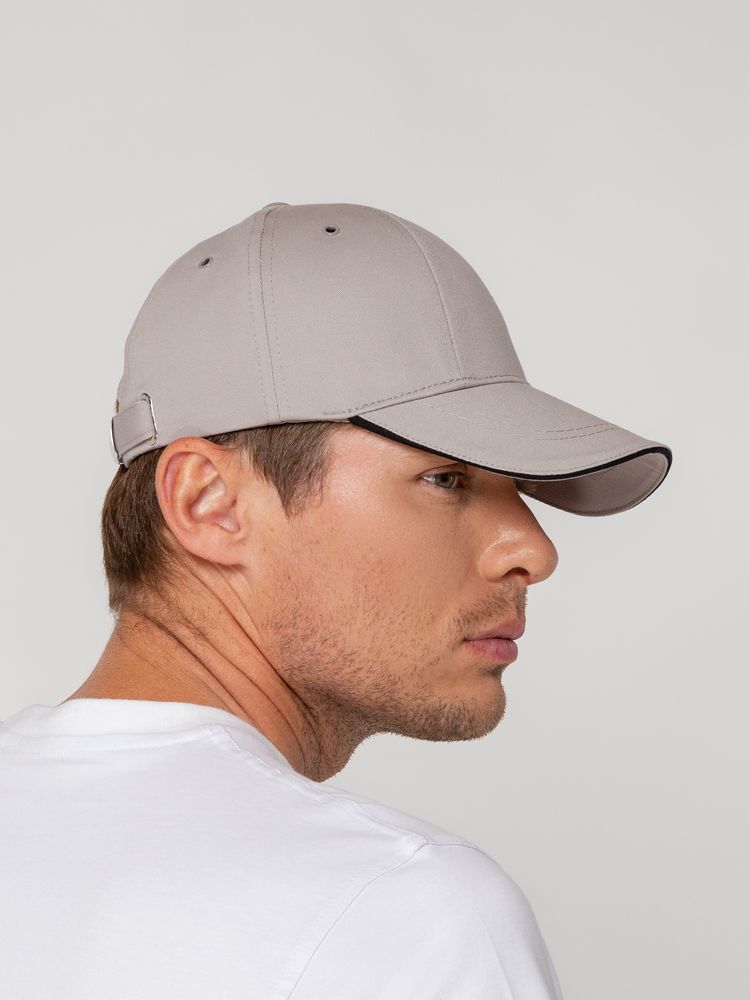 Бейсболка Canopy, серая с черным кантом