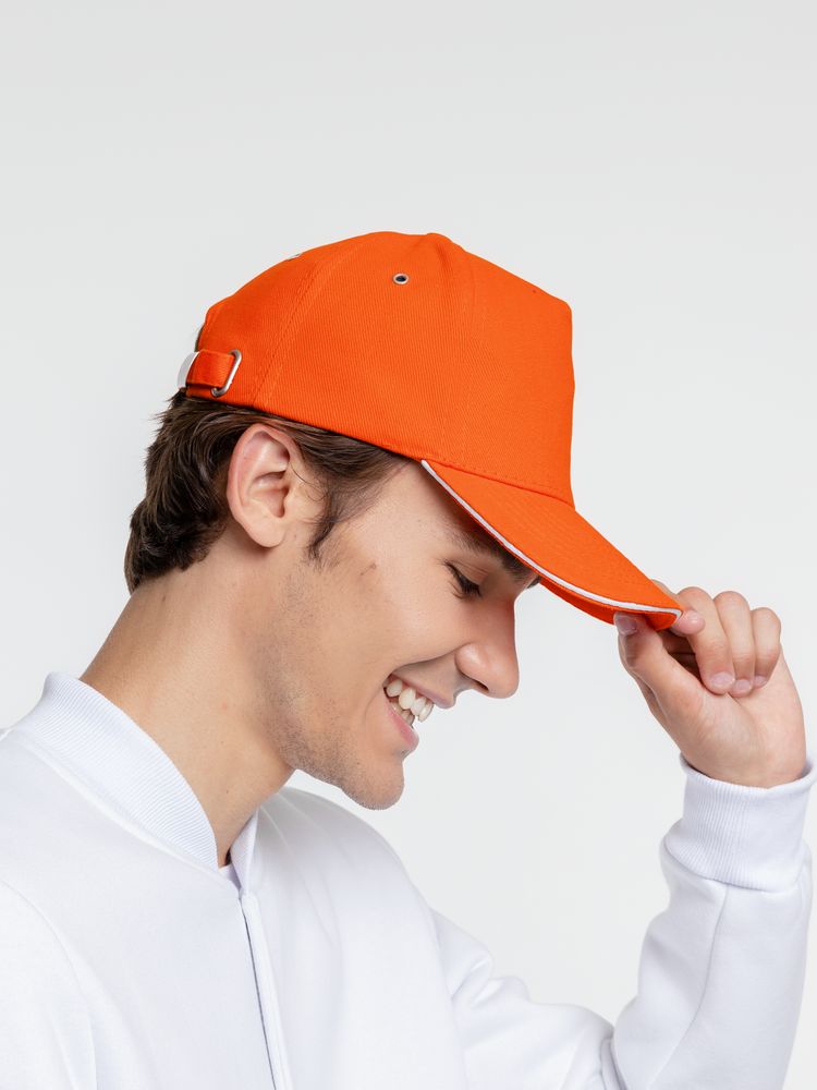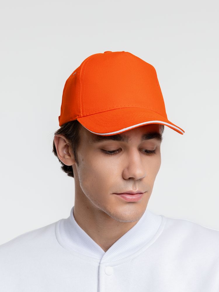 Популярная модель с 5 клиньями без лобового шва выполнена из плотного хлопка.- Козырек-сэндвич с контрастной вставкой