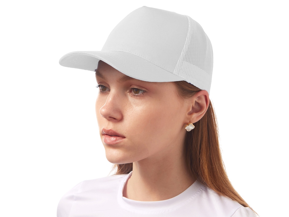 Пяти панельная бейсболка с передней частью из хлопка для комфорта головы и лба. Задняя часть из пластиковой сетки, которая отвечает за циркуляцию воздуха и обеспечивает изделию износостойкость. Для подгонки по размеру головы — пластиковая застежка. -