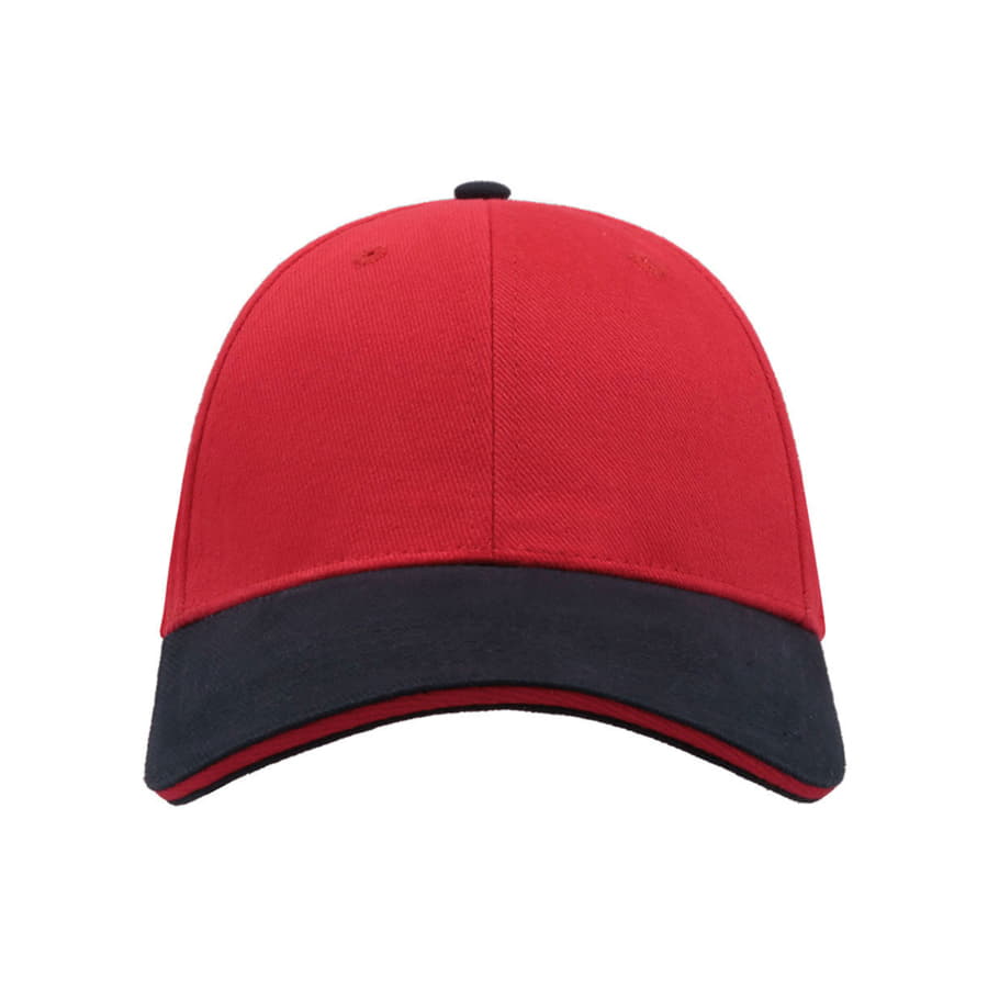 Бейсболка LIBERTY SANDWICH из плотного хлопка - одно из лучших решений для промомероприятий и корпоративной формы: - 6 клиньев, - 6 вышитых люверсов для лучшей вентиляции, - изогнутый козырек «сэндвич» с декоративным кантом, - металлическая застежка.* Допустим незначительный разнотон.Купол: цвет близкий к Pantone 186 C или 200 С, козырек: цвет близкий к Pantone 289 С; цвет канта близкий к Pantone 186 C или 200С 58,5 см - средний размер, с помощью застёжки его можно увеличить или уменьшить до необходимого. -