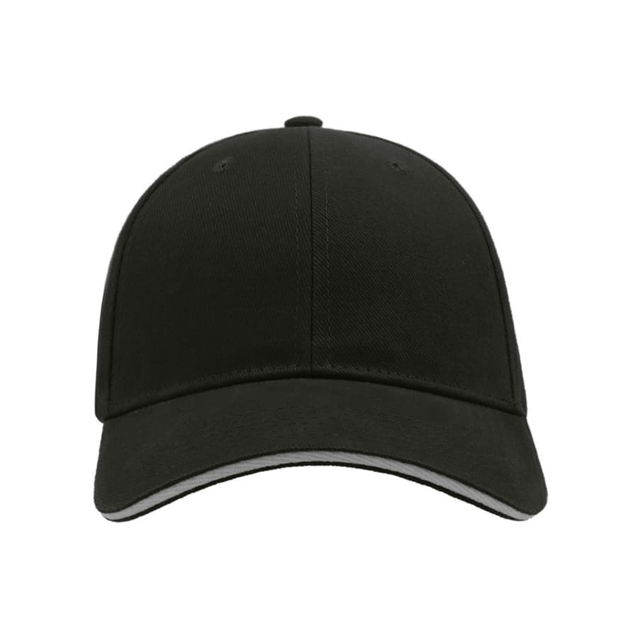 Бейсболка LIBERTY SANDWICH из плотного хлопка - одно из лучших решений для промомероприятий и корпоративной формы: - 6 клиньев, - 6 вышитых люверсов для лучшей вентиляции, - изогнутый козырек «сэндвич» с декоративным кантом, - металлическая застежка.Цвет бейсболки близкий к Pantone Black; цвет канта близкий к Pantone White 58,5 см - средний размер, с помощью застёжки его можно увеличить или уменьшить до необходимого. -