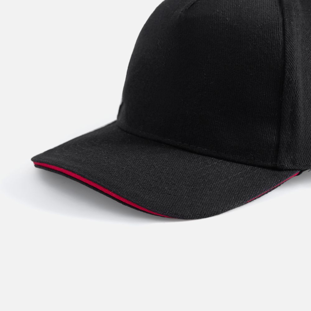 Модель бейсболки с 5-ю клиньями без лобового шва из плотного чесаного хлопка.- Обшивные люверсы