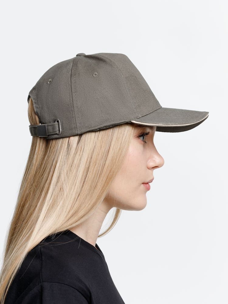 Модель бейсболки с 5-ю клиньями без лобового шва из плотного чесаного хлопка.- Обшивные люверсы