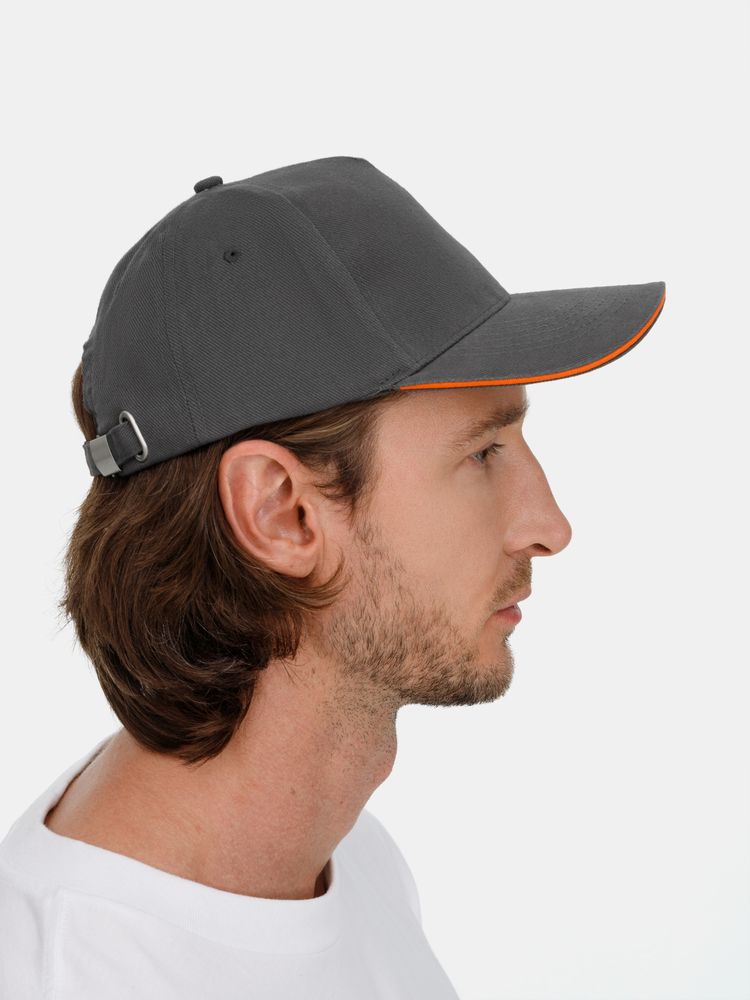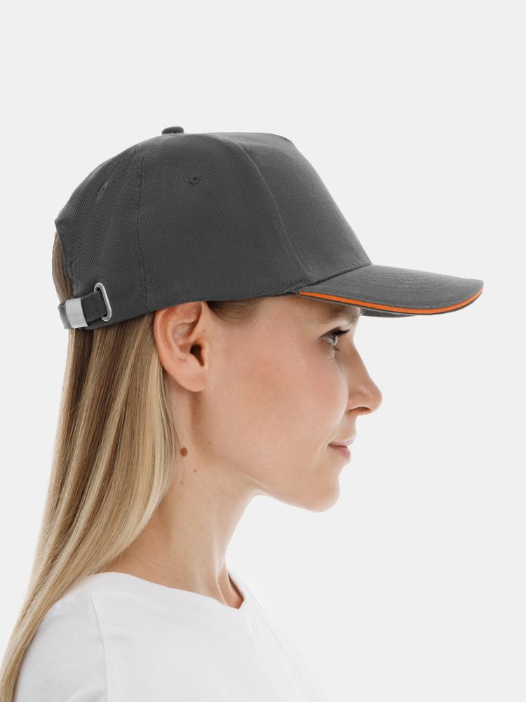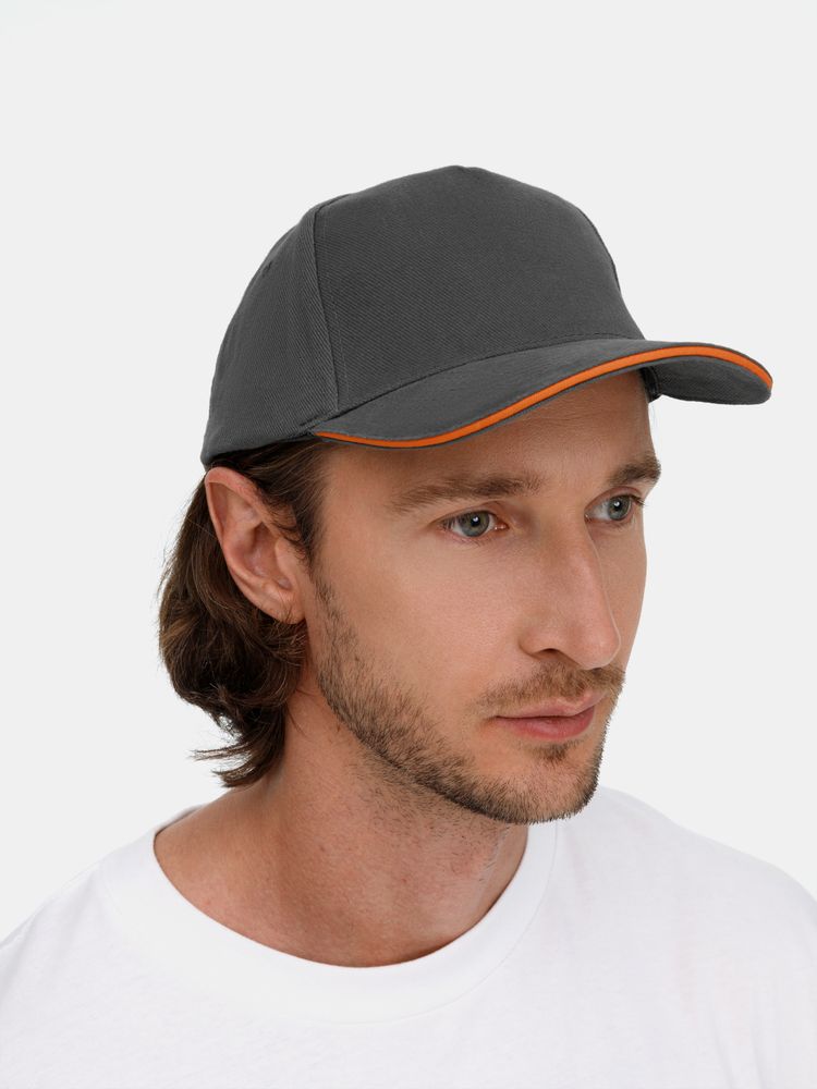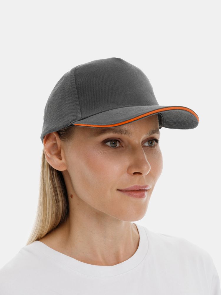 Бейсболка Long Beach, серая с оранжевым