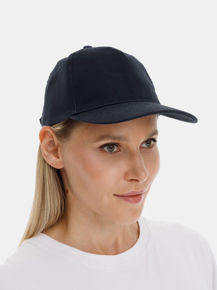Модель бейсболки с 5-ю клиньями без лобового шва из плотного чесаного хлопка.- Обшивные люверсы