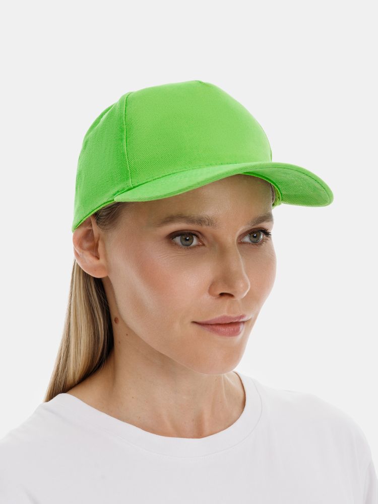 Модель бейсболки с 5-ю клиньями без лобового шва из плотного чесаного хлопка.- Обшивные люверсы