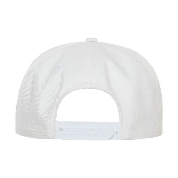 Бейсболка-пятиклинка с прямым жестким козырьком и пластиковой регулируемой застежкой.