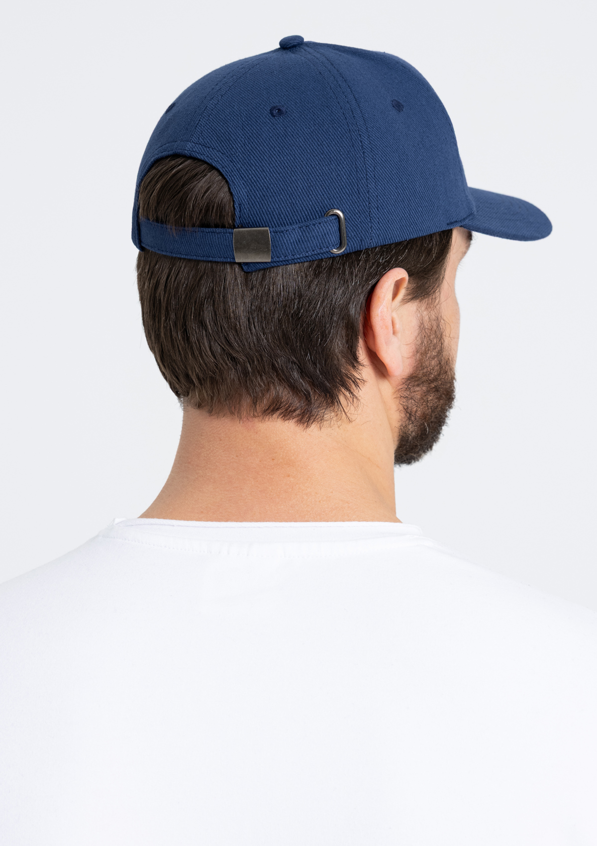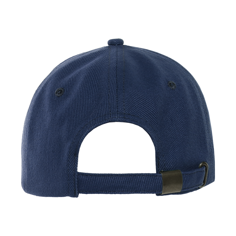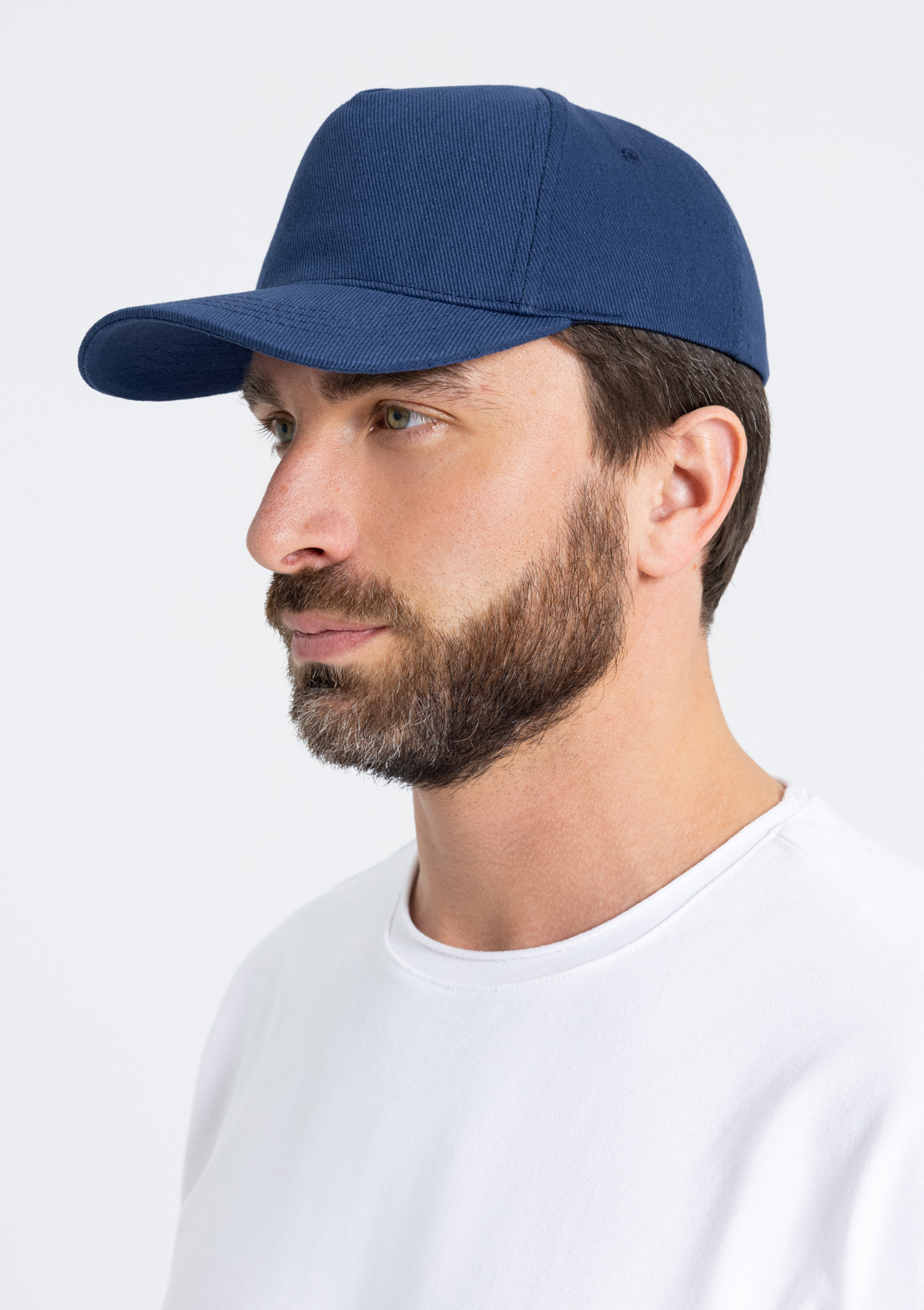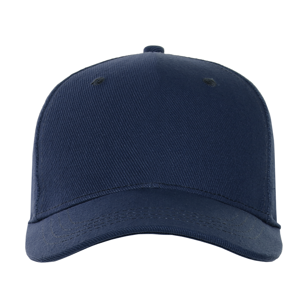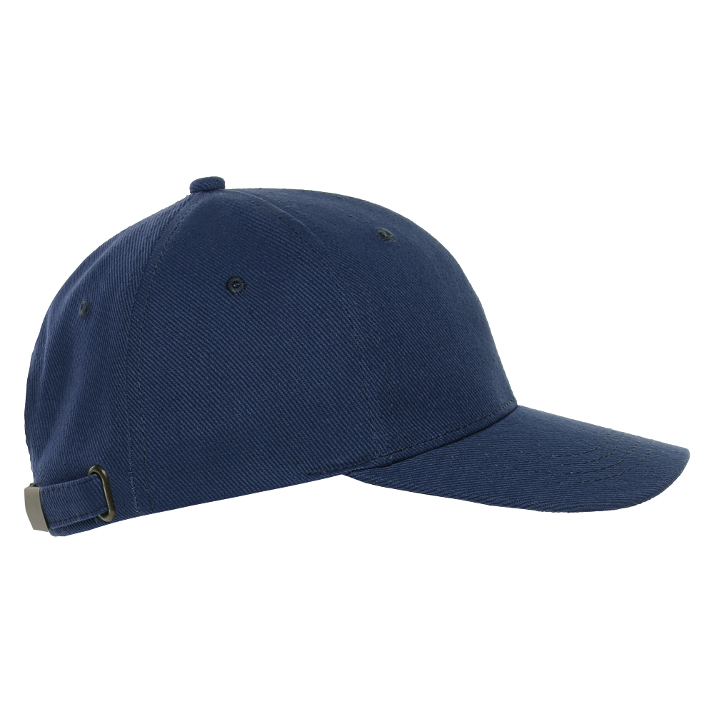 Бейсболка-пятиклинка без лобового шва с изогнутым жестким козырьком и регулируемой металлической застежкой.
