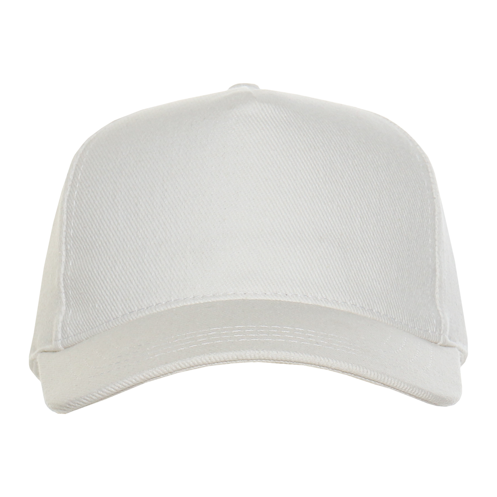 Бейсболка-пятиклинка без лобового шва с изогнутым жестким козырьком и регулируемой металлической застежкой.