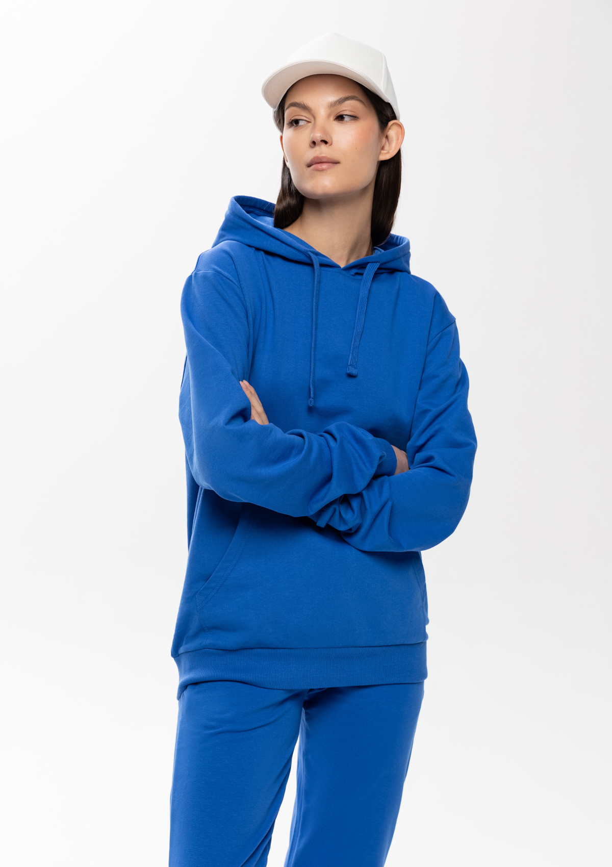 Модель выполнена из плотного, но мягкого хлопкового твила. Фактурный материал легко пропускает воздух, не мнется и хорошо держит форму.