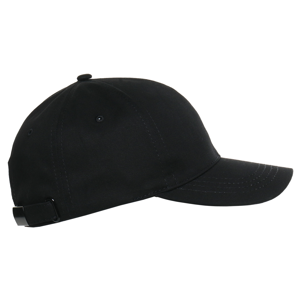 Бейсболка-шестиклинка с классическим изогнутым козырьком и застежкой на ленту с металлическим замком в тон основному цвету изделия.
