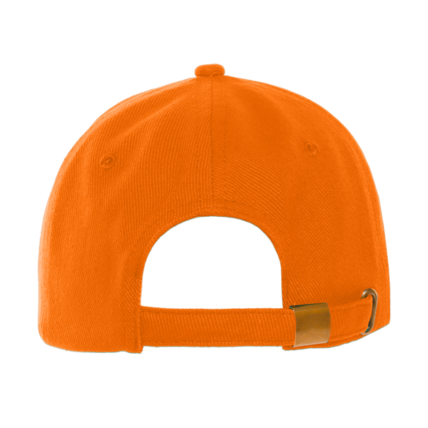 Бейсболка-шестиклинка с изогнутым жестким козырьком, прилегание регулируется ремешком с металлической застежкой.