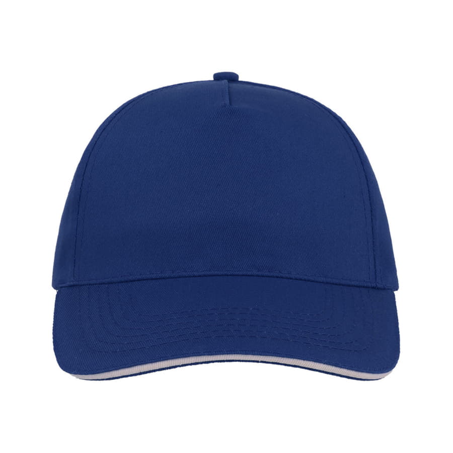 Универсальная легкая бейсболка START FIVE SANDWICH с контрастным кантом на козырьке. Бейсболка имеет универсальный размер и хорошо подойдет для любого промомероприятия. - 5 клиньев, - без лобового шва, - 4 вышитых люверса для лучшей вентиляции, - застёжка на липучке, - изогнутый козырек «сэндвич» с шестью прошитыми рядами. Цвет близкий к Pantone 655C 58,5 см - средний размер, с помощью застёжки его можно увеличить или уменьшить до необходимого. -