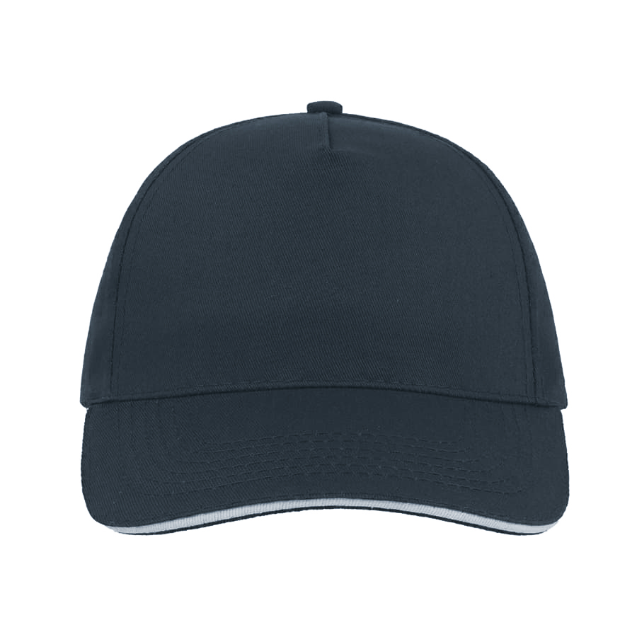 Универсальная легкая бейсболка START FIVE SANDWICH с контрастным кантом на козырьке. Бейсболка имеет универсальный размер и хорошо подойдет для любого промомероприятия. - 5 клиньев, - без лобового шва, - 4 вышитых люверса для лучшей вентиляции, - застёжка на липучке, - изогнутый козырек «сэндвич» с шестью прошитыми рядами. Цвет близкий к Pantone 7546C 58,5 см - средний размер, с помощью застёжки его можно увеличить или уменьшить до необходимого. -