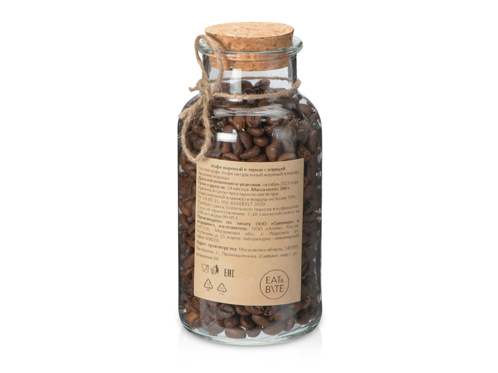 Состав: кофе натуральный жареный в зернах, палочки корицы. -