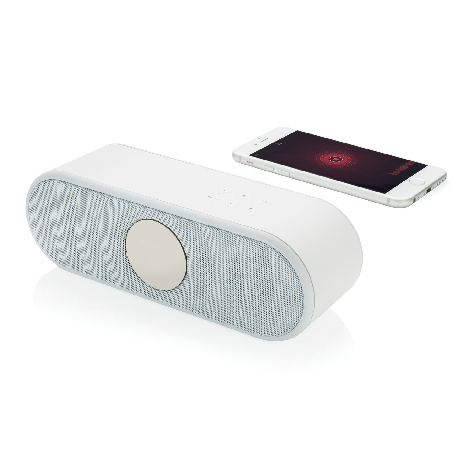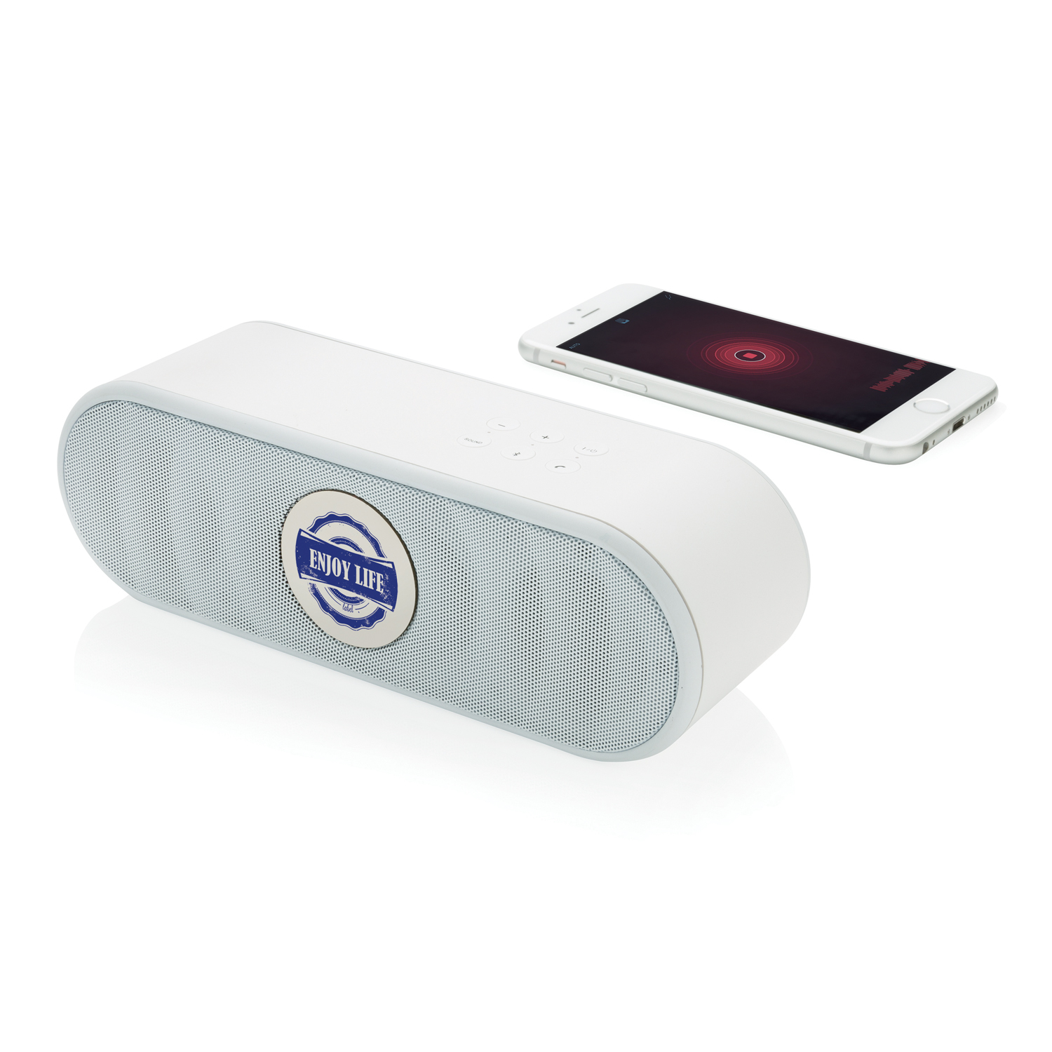 Стильная беспроводная колонка Flow с резиновым напылением порадует не только слух, но и взгляд. На стильном корпусе расположено 6 кнопок: включение / выключение, регулировка громкости, прием звонков и кнопка выбора различных режимов настройки частот. На нижней панели предусмотрены две полосы для хорошего сцепления с поверхностью и отличного качества звука. Встроенного аккумулятора емкостью 1200 мАч хватает на 10 часов работы. На колонке также есть стандартный аудио-разъем jack для подключения к телефону или компьютеру.