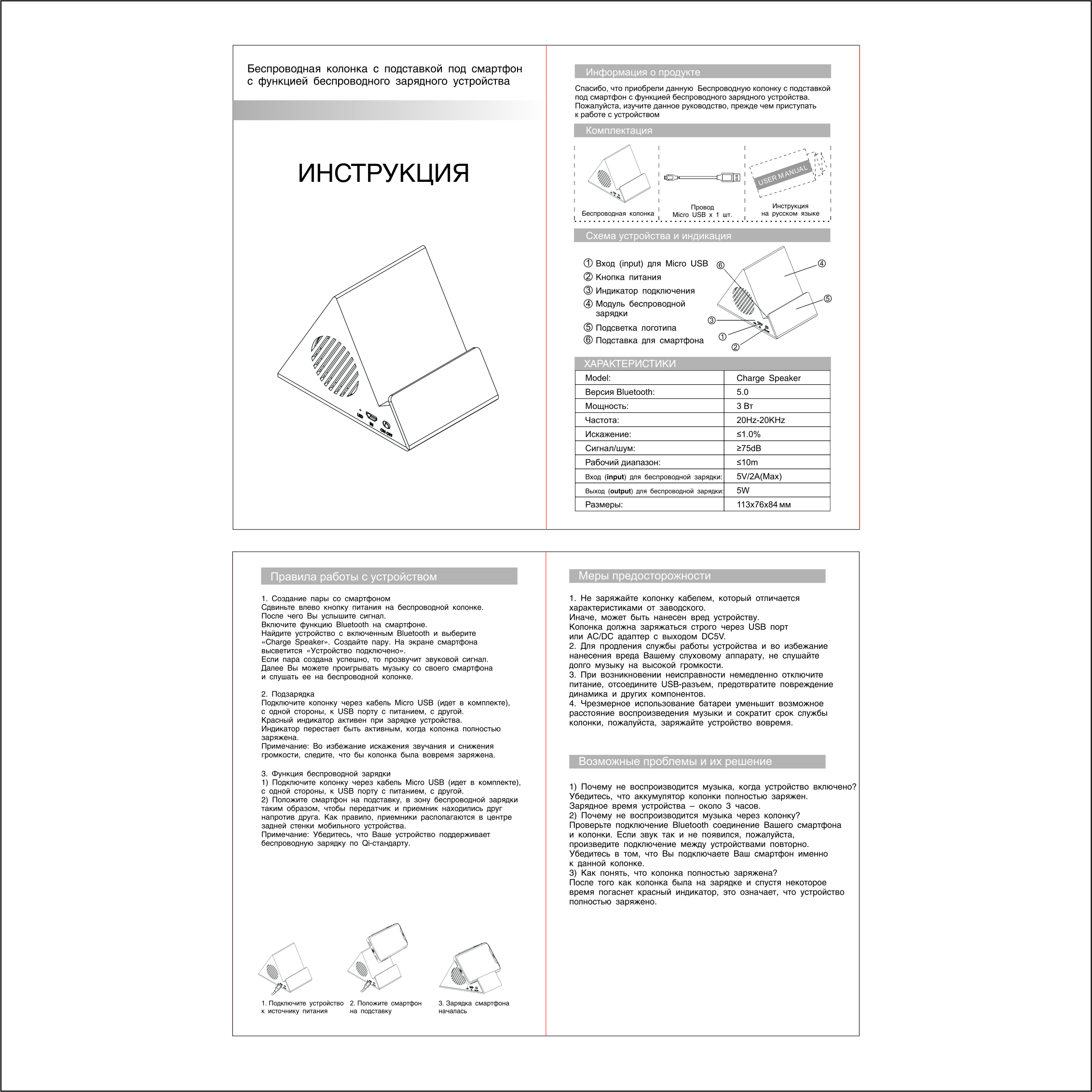 Компактная колонка-подставка совмещает в себе уникальный дизайн, хорошее качество звука и популярную, удобную функцию беспроводного заряда!