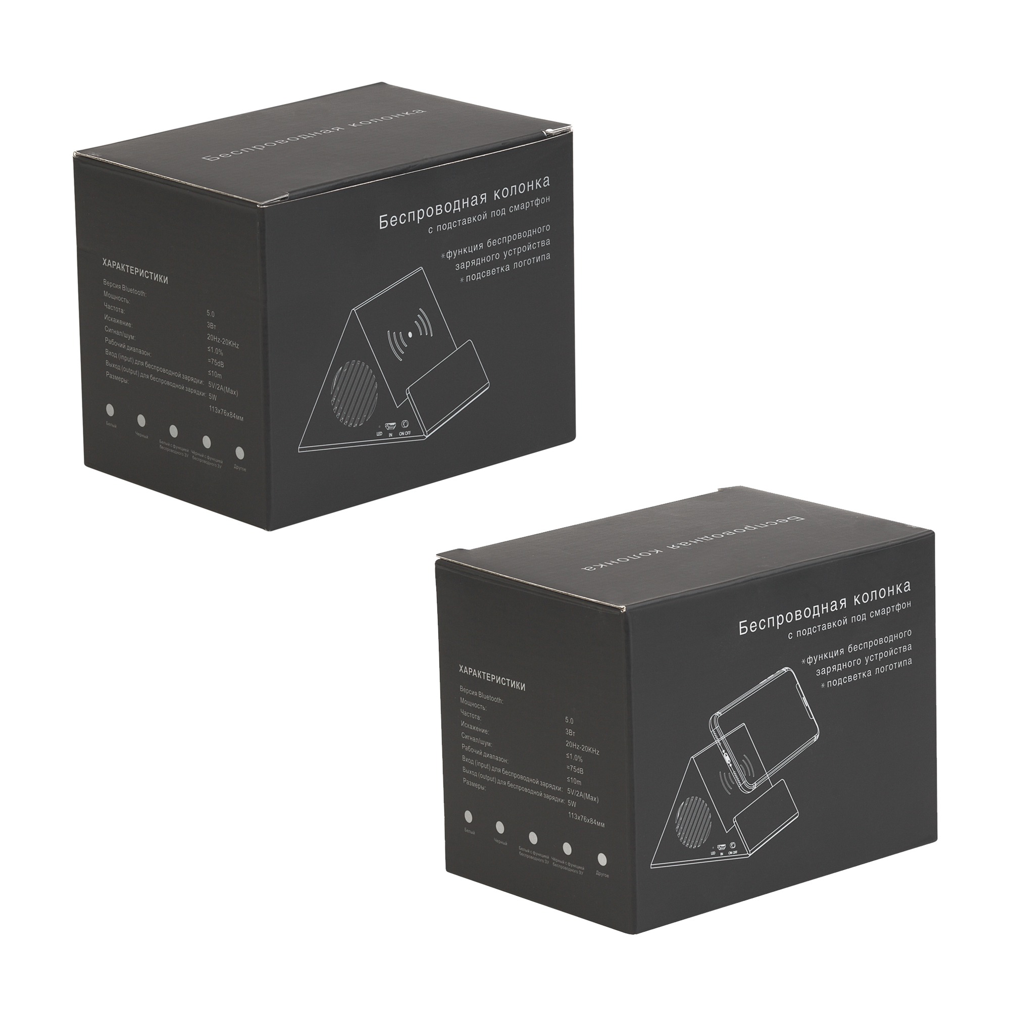 Bluetooth колонка-подставка "Rock" 3Вт с беспроводным зарядным устройством и подсветкой логотипа