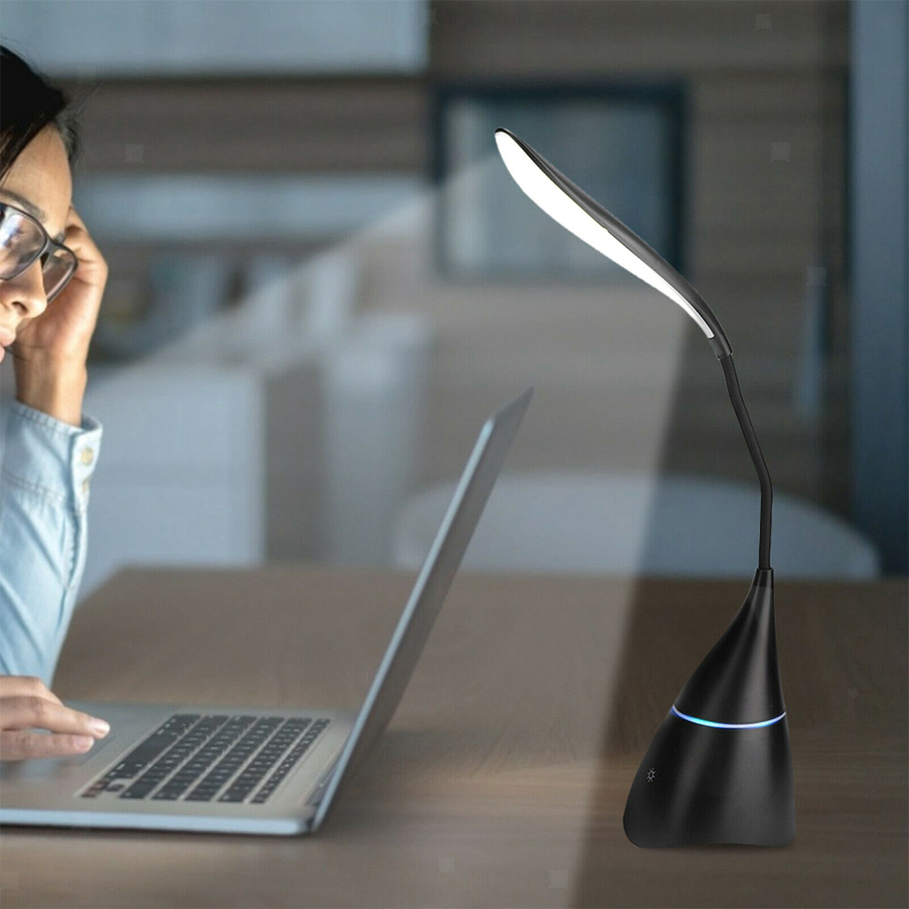 Удивительно эргономичная настольная лампа Swanny порадует стильным дизайном и востребованными функциями. Красота и функциональность найдет свое место на офисном столе или журнальном столике квартиры. LED лампа с возможностью двух режимного освещения – теплый свет и яркий белый не утомляют глаза при длительном ночном чтении. Колонка bluetooth – это отличная опция для любителей музыки, а встроенная батарея позволяет свободно перемещать лампу и колонку. В комплекте кабель USB и инструкция. Тип лампы LED (18 диодов). Цветовая температура 3000-6000К. Мощность лампы: 3 Вт. Мощность колонки ≥ 85db. Bluetooth 4.2. Батарея Li-Ion 1200mAh/3.7V. Вход: 5V/2A/100~240V/50-60HZ.- Виды нанесений: Тампопечать большая, УФ-печать