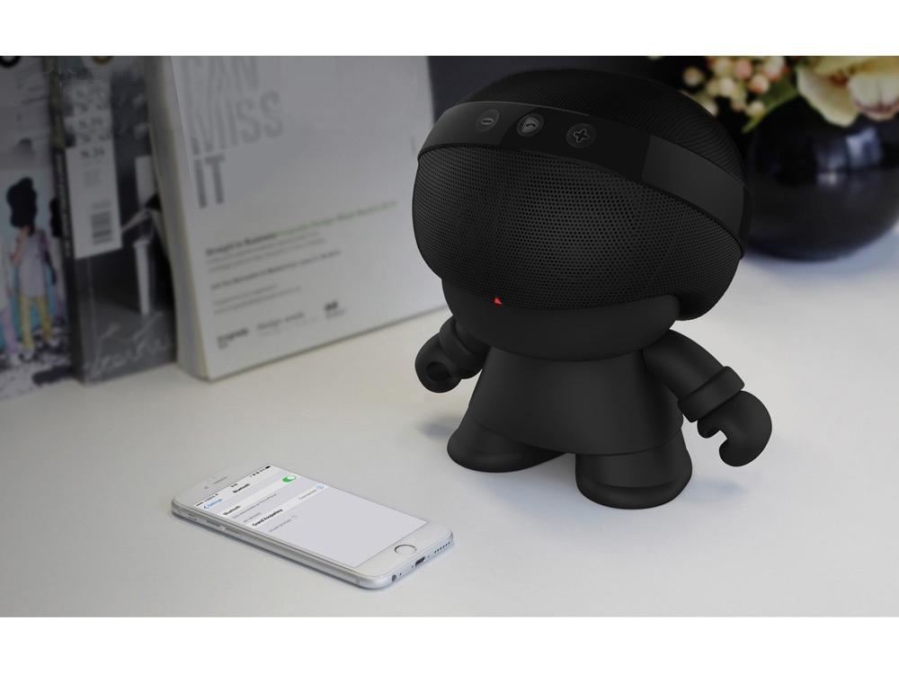 Беспроводная портативная стерео колонка Grand XBOY с расширенными басами выполнена в форме супергероя из вымышленной страны бренда Xoopar. Динамик соединяется с любыми устройствами, поддерживающими передачу данных по Bluetooth. Управление колонкой очень простое, оно осуществляется с помощью сенсорных кнопок. Колонка Grand XBOY поддерживает функцию ответа на входящие звонки, поступающие на подключенный телефон. Динамик Grand XBOY может работать до 8 часов без подзарядки. -