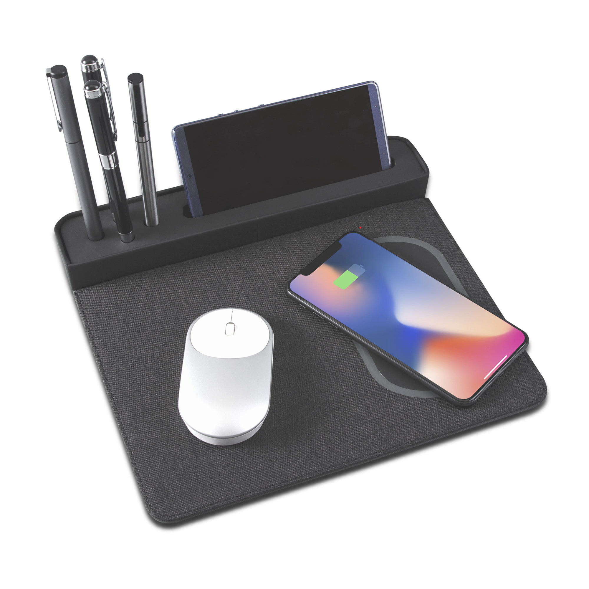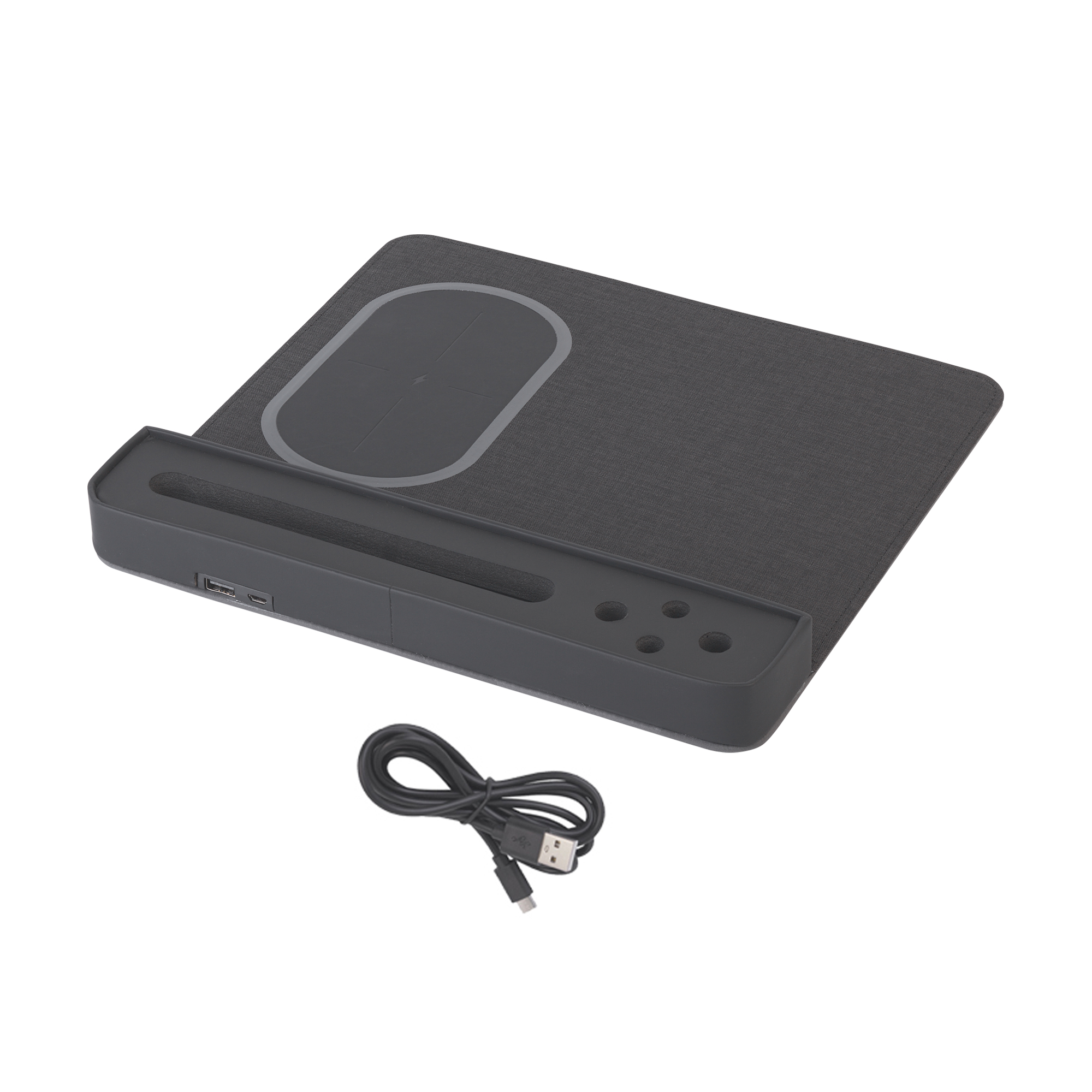 Настольная подставка 7420 - отличный организатор рабочего пространства, позволяет держать все необходимое под рукой, сочетает в себе функции коврика для мыши и зарядного устройства. Встроенное беспроводное зарядное устройство получает питание через провод USB/microUSB 150 см, который идет в комплекте. При наличии питания световой индикатор отображает статус зарядки: красный - ожидание подключения на беспроводном модуле, синий - идет зарядка через Qi-интерфейс. Подходит для всех беспроводных устройств Qi-стандарта. Данная технология является универсальной, её используют производители смартфонов, работающих на платформе android и iOS. В характеристиках устройства должна быть обозначена поддержка беспроводной зарядки.