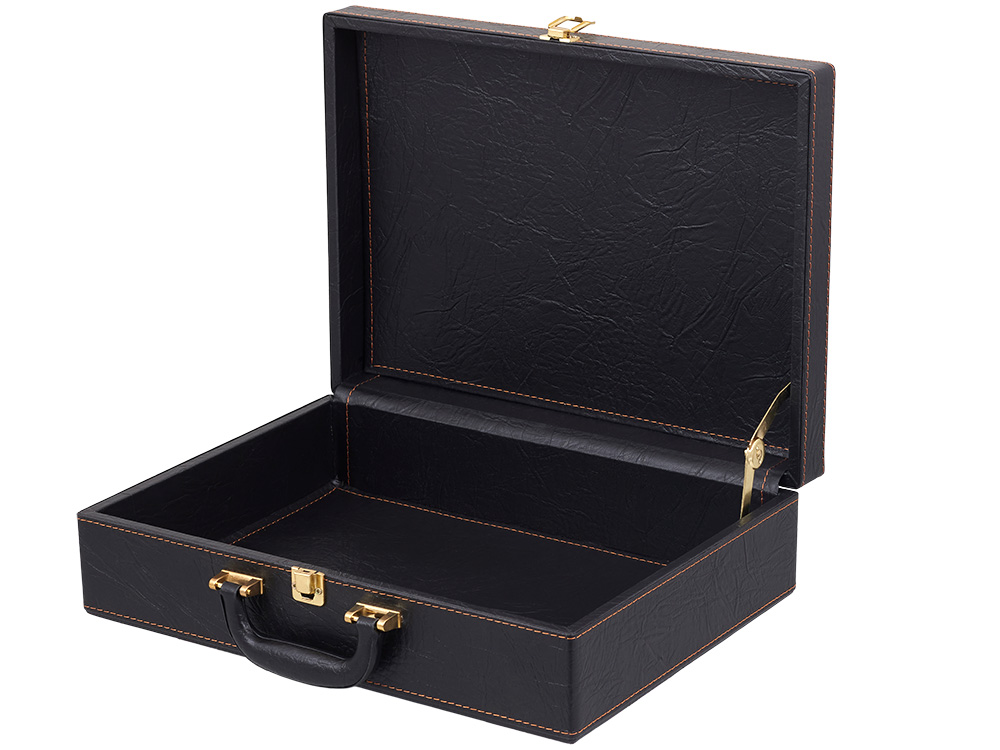 Элегантный дипломат из сплит-кожи с аккуратной строчкой по краям – идеальная упаковка для особенного подарка. Удобная ручка и надежный замочек делают его не только красивым, но и практичным. Внутри достаточно места для презента, который запомнится надолго!