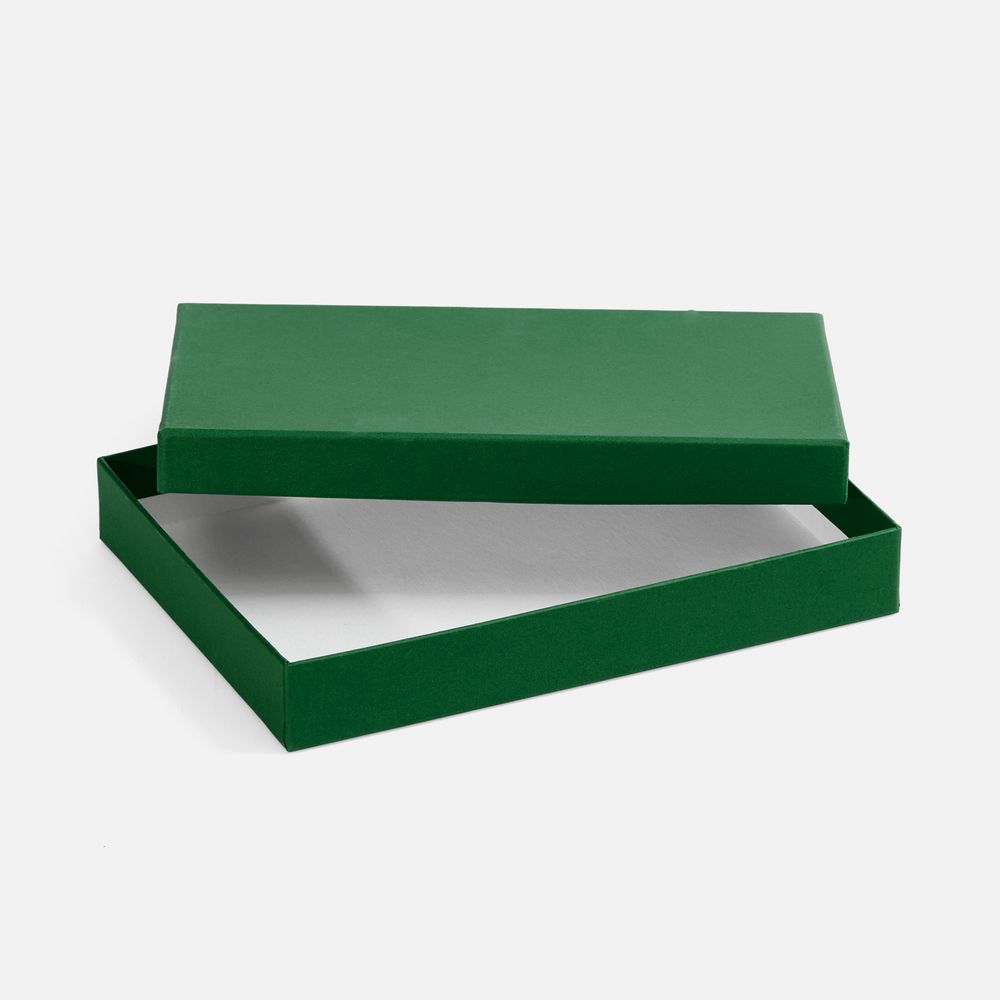 Коробка изготовлена из переплетного картона, кашированного гладкой дизайнерской бумагой Malmero.